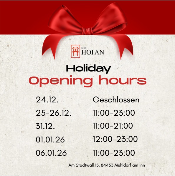Tauchen Sie ein in die Welt der vietnamesischen Küche! Bei Miss Hoi An erwartet Sie eine Auswahl an authentischen, liebevoll zubereiteten Gerichten, stets frisch und mit hochwertigen Zutaten. Genießen Sie in einer warmen, gemütlichen Atmosphäre und lassen Sie sich von uns verwöhnen!